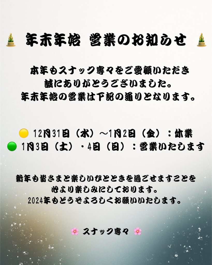 2025年もスナック寧々をご愛顧いただき、誠にありがとうございました。